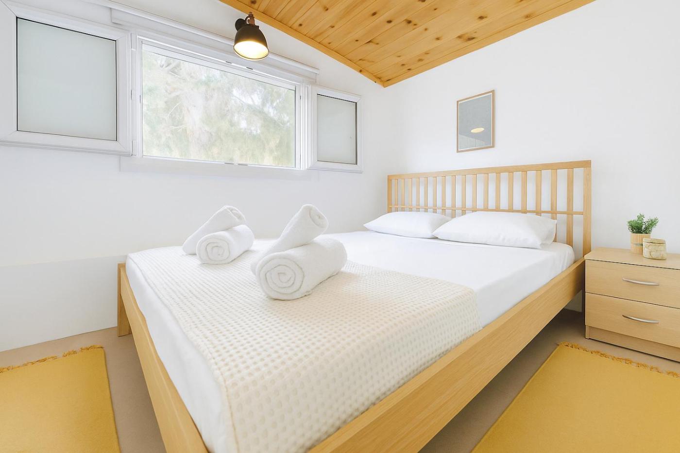 Two-Bedroom House. Boasting a private entrance, this air-conditioned holiday home includes 1 living room, 2 separate bedrooms and 1 bathroom with a shower and a hairdryer. Guests will find a stovetop, a refrigerator, an oven and a tea and coffee maker in the well-equipped kitchen. The holiday home also features a barbecue. Featuring a terrace with sea views, this holiday home also offers a washing machine and a flat-screen TV. The unit has 5 beds.
